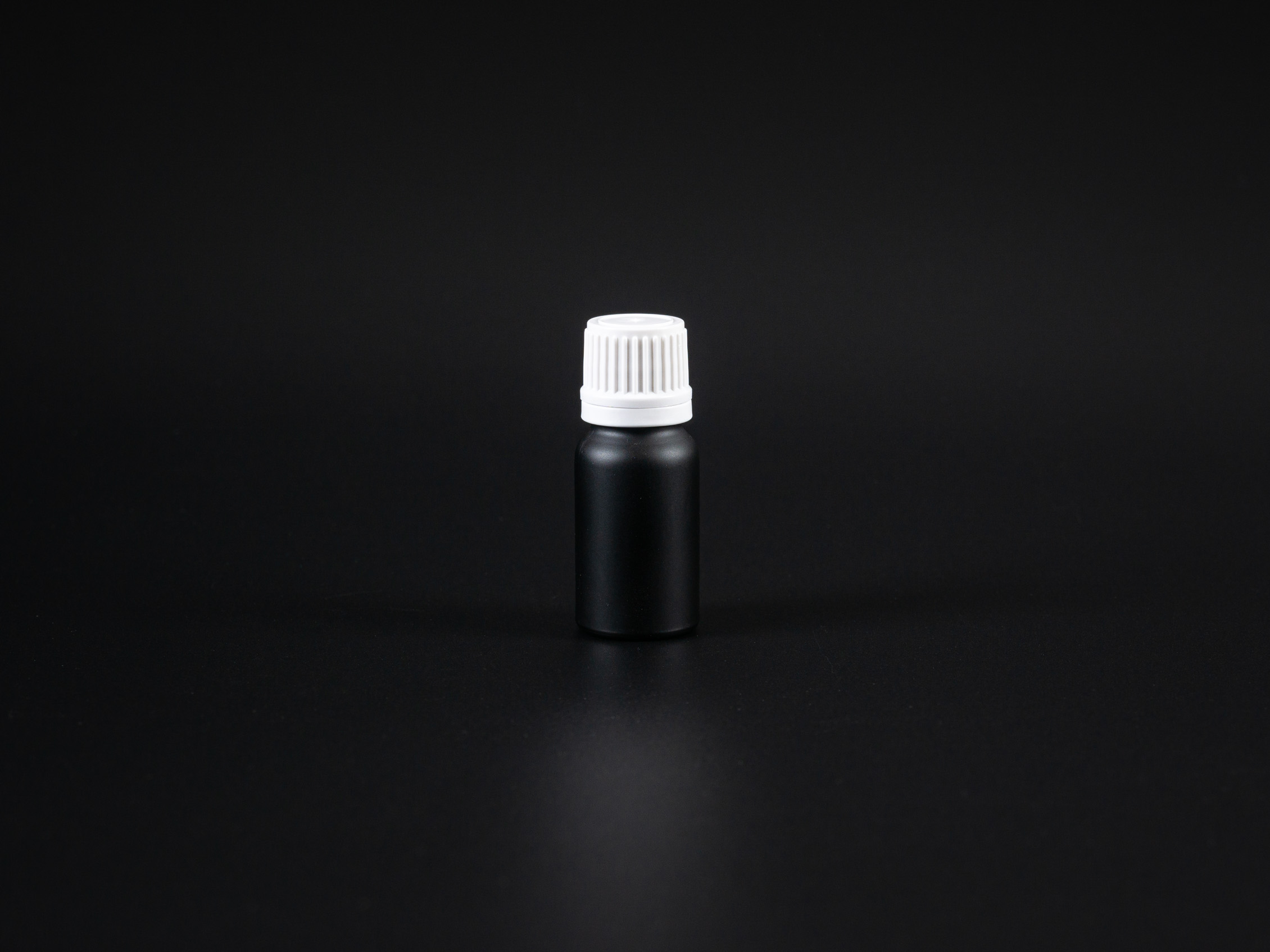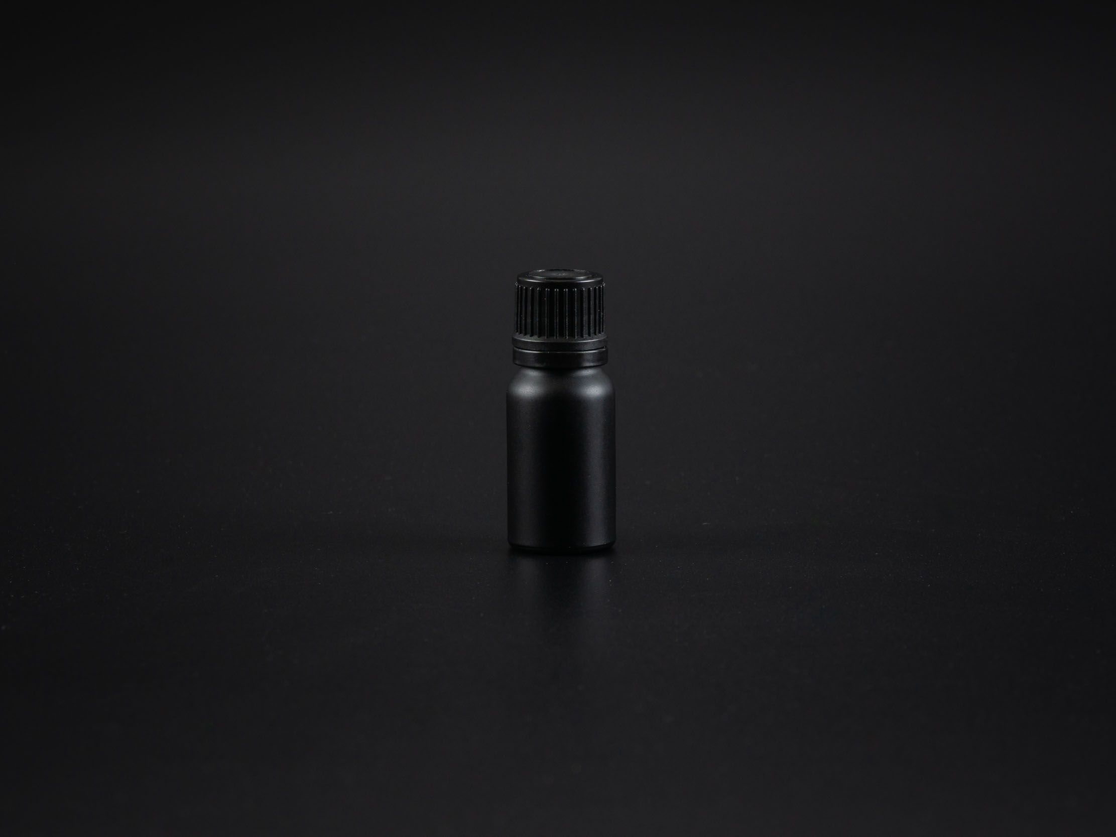 Tropfflasche aus mattiertem Schwarzglas mit Originalitätsring, 10ml