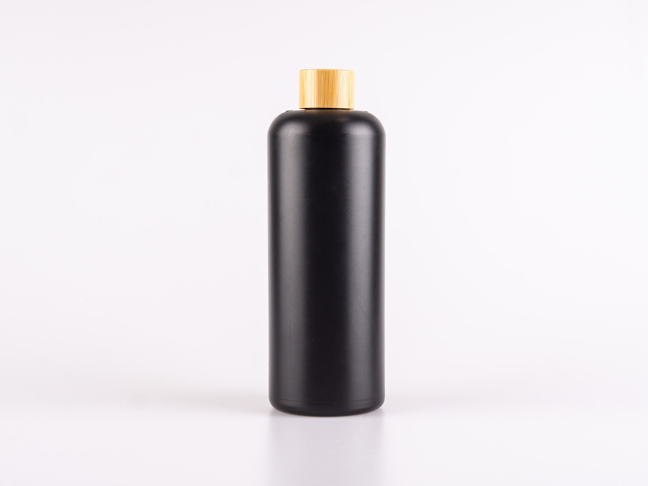 Mattschwarze Kunststoffflasche mit Bambusdeckel