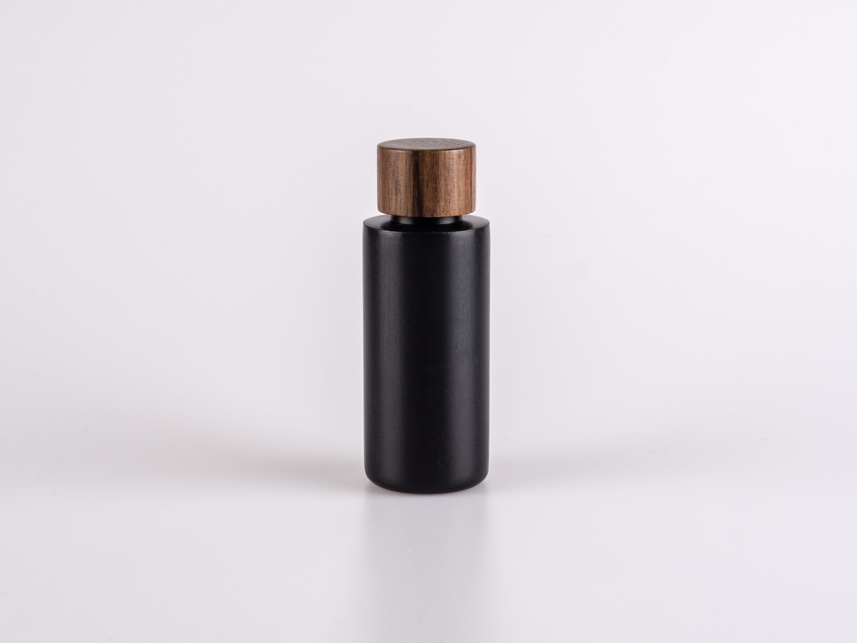 Mattschwarze Flasche mit Deckel aus Nussbaumholz