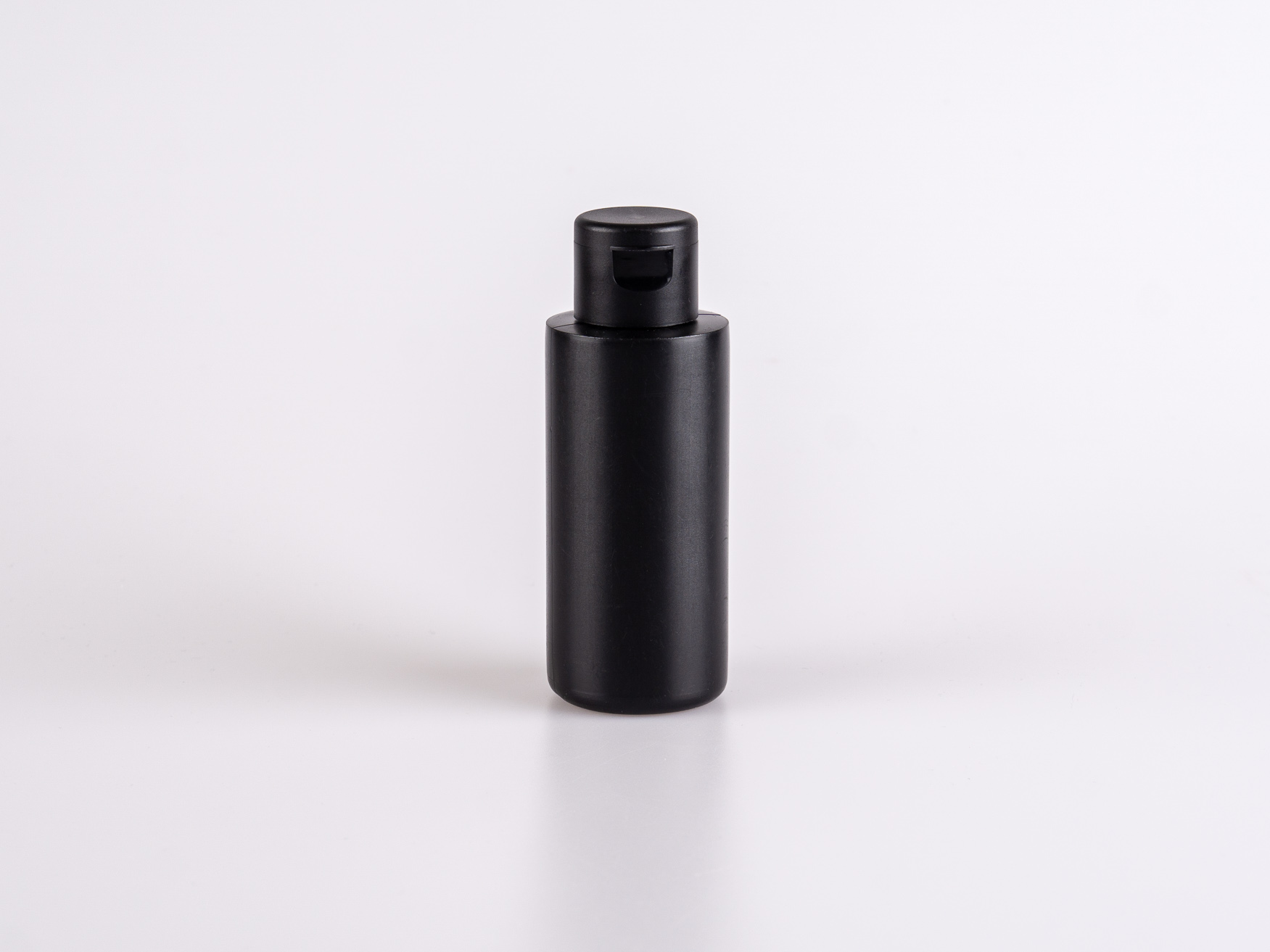 Mattschwarze Kunststoffflasche in praktischer 100ml Grösse mit DiscTop oder FlipTop Verschluss in schwarz