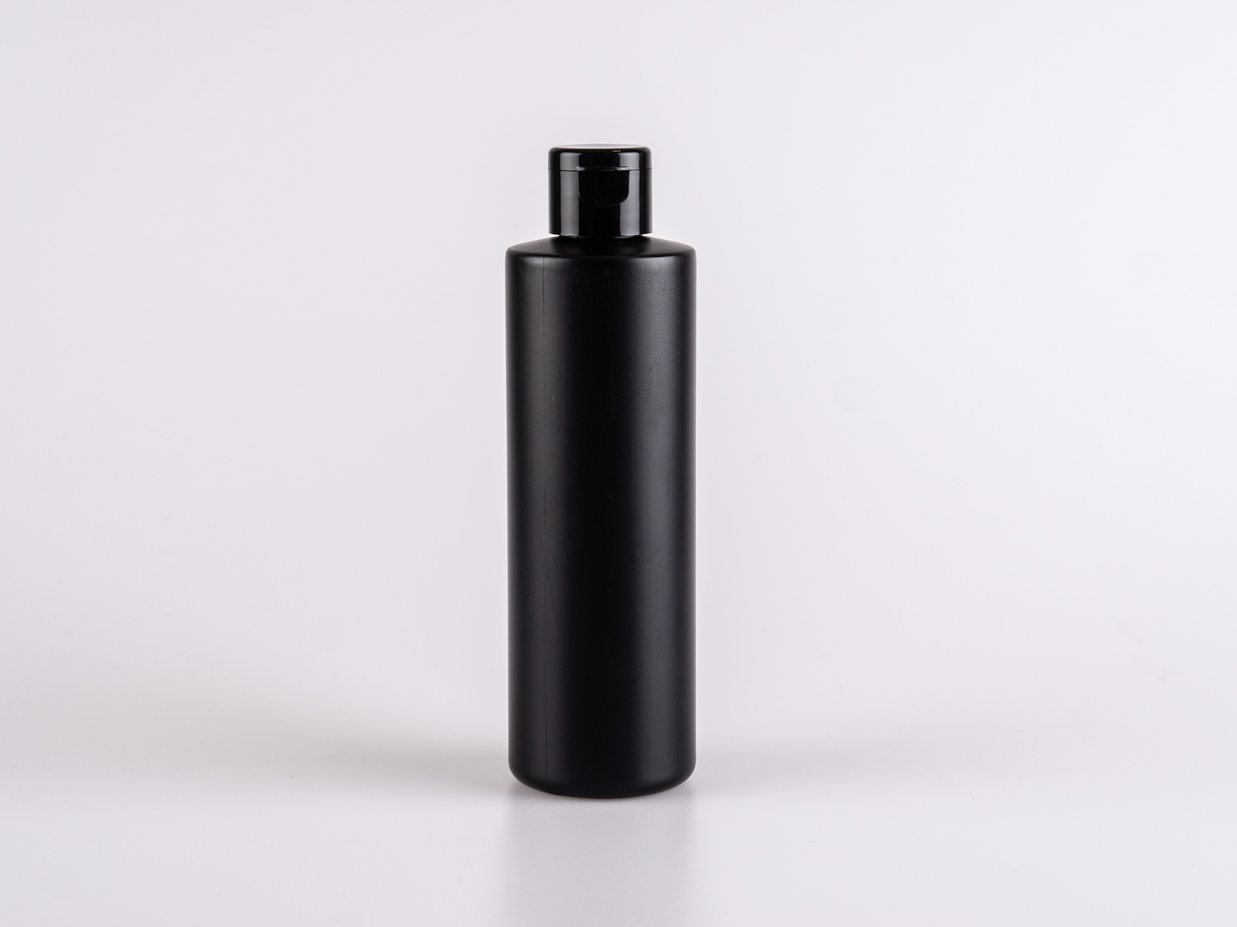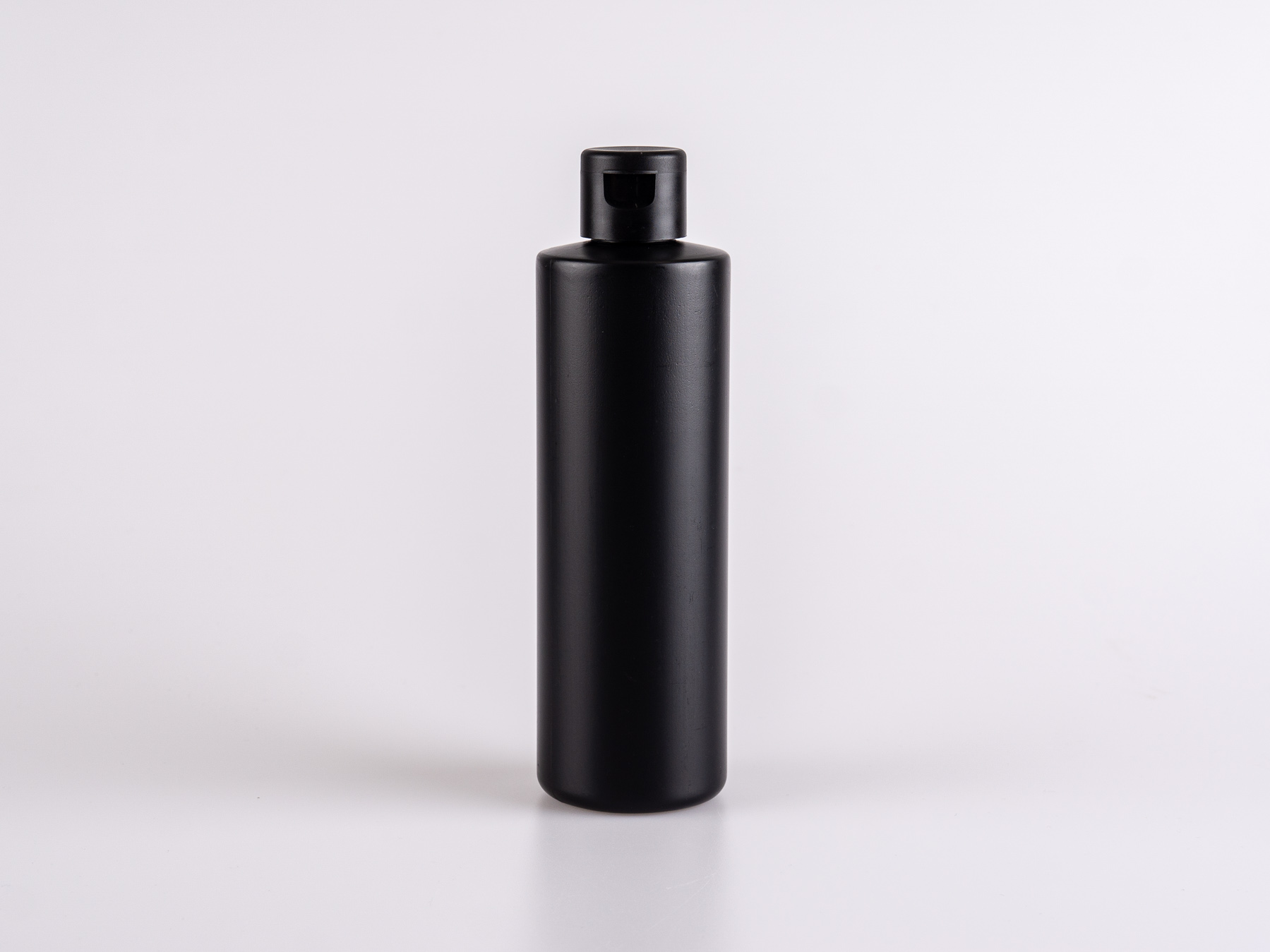 mattschwarze HD-PE Flasche mit FlipTop Verschluss, 250ml
