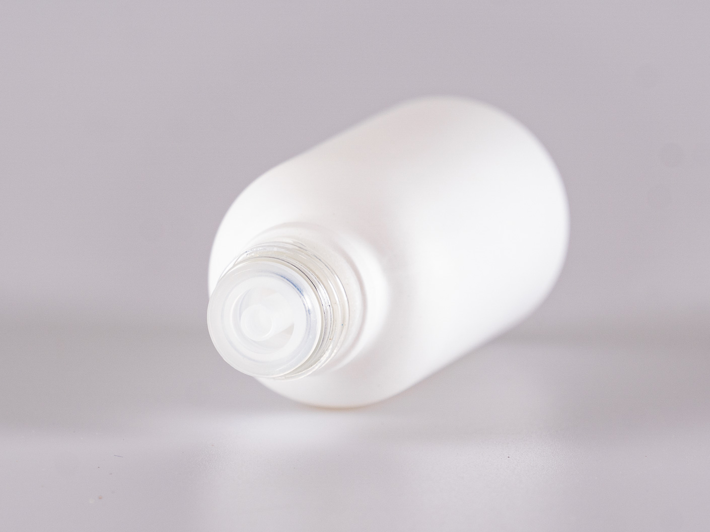 ropfflasche aus weiss mattiertem Glas mit Originalitätsring, 50ml