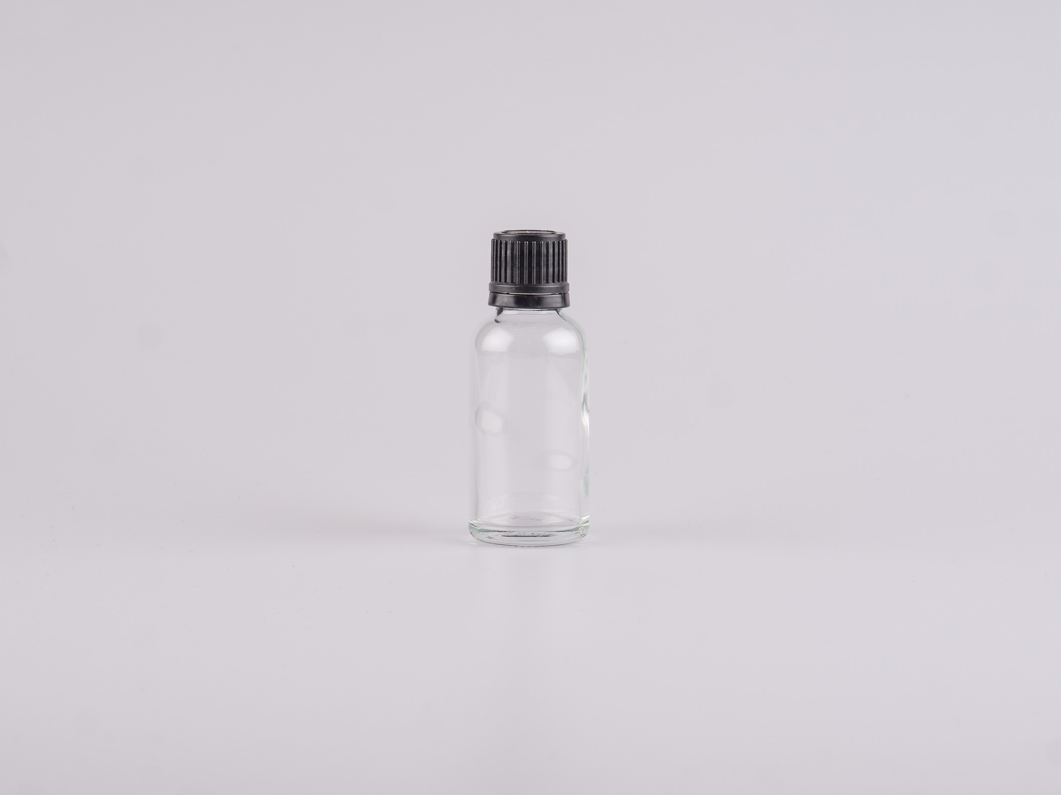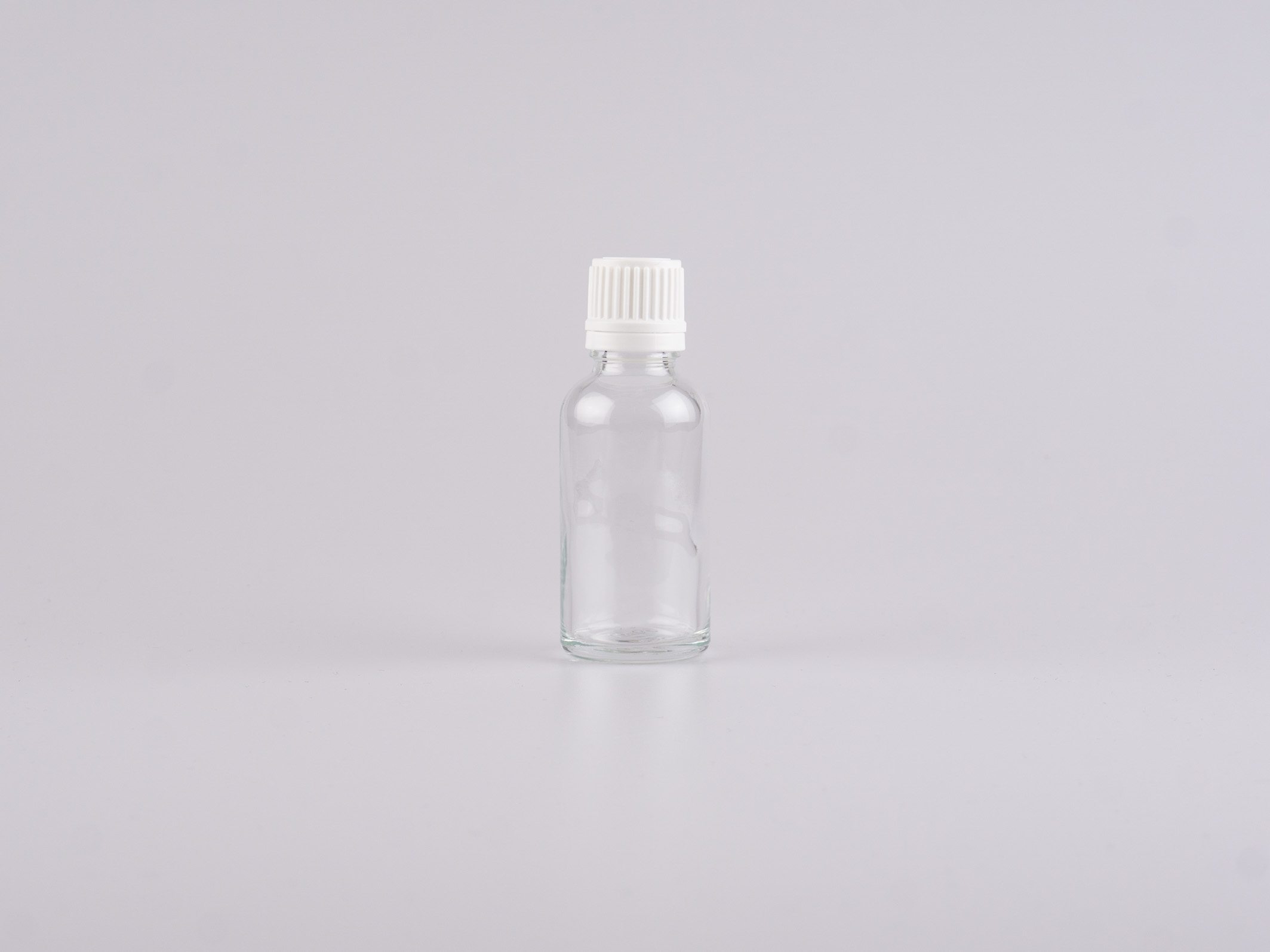 Klarglasflasche 50ml, mit Tropfmontur für wässrige Lösungen, OV Verschluss