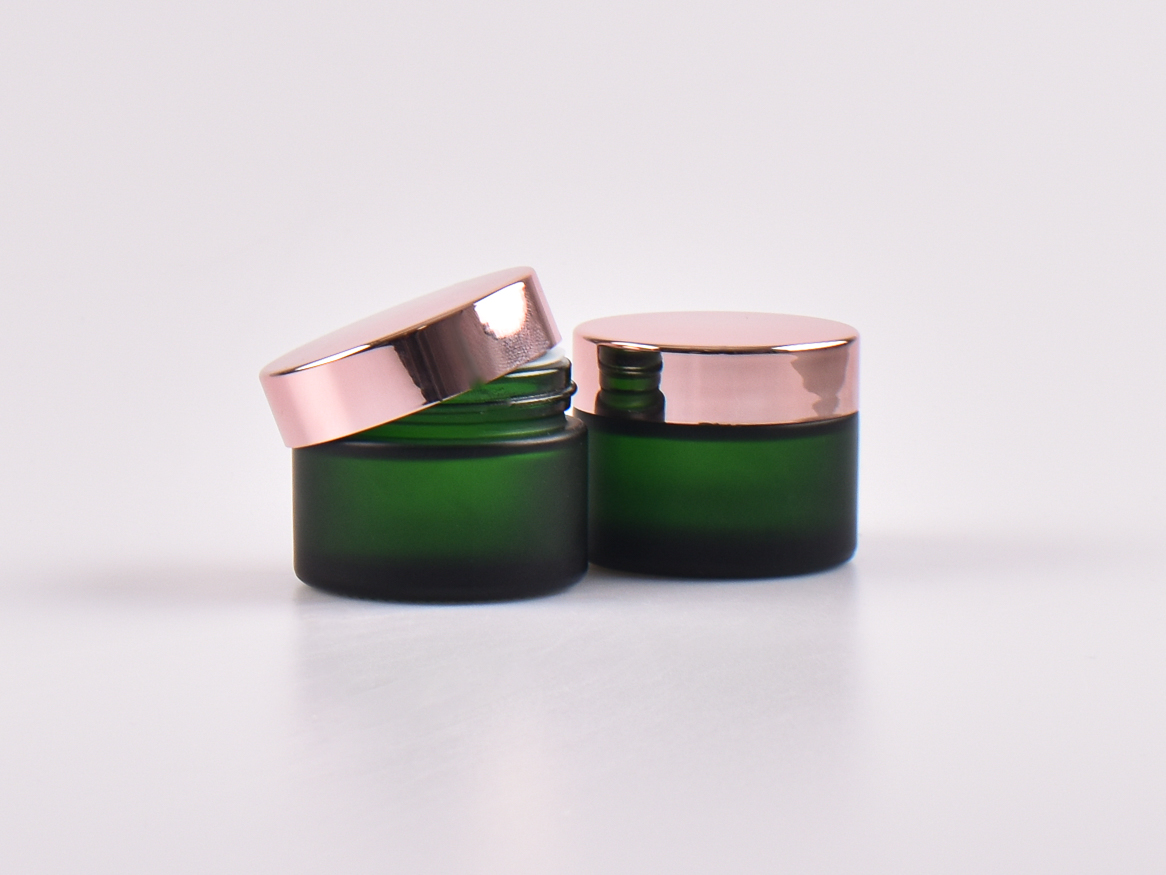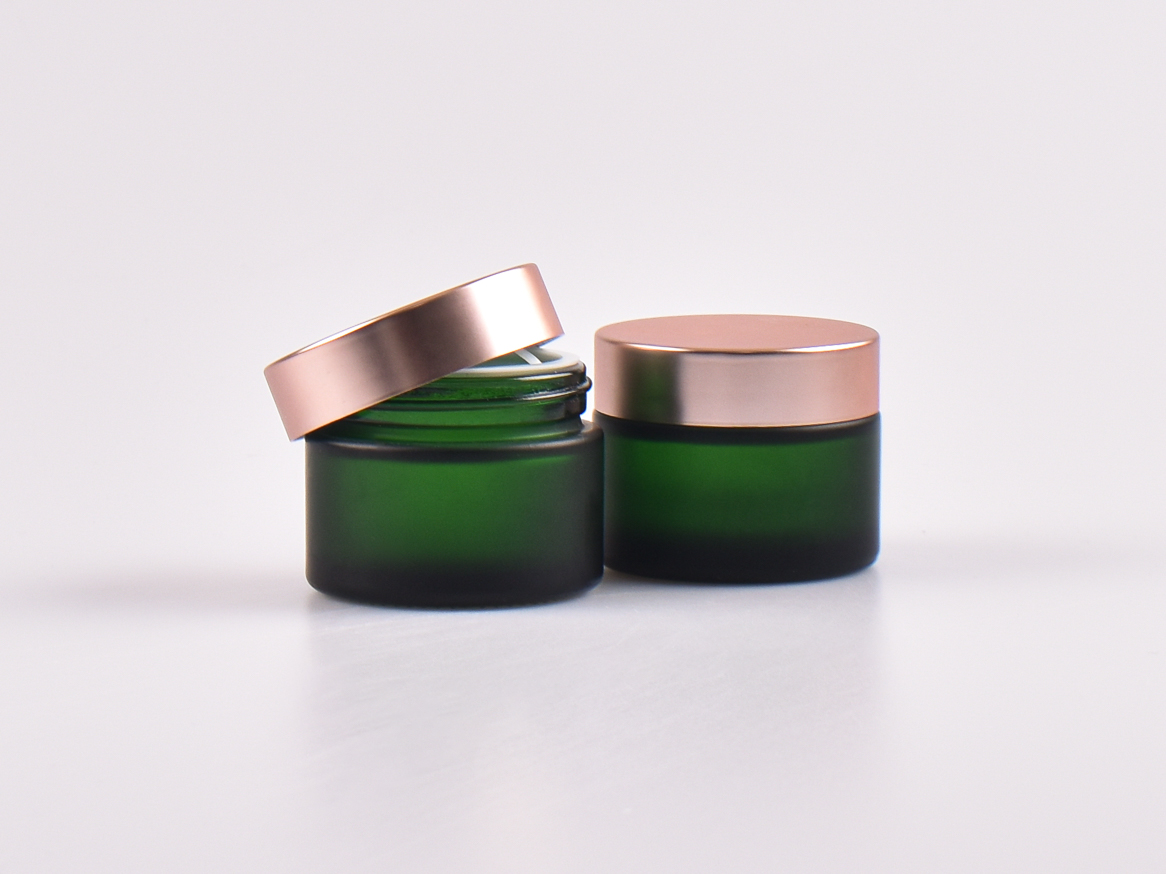 Sehr edle Kosmetikdose aus säuremattiertem grünem Glas. Diese Glasdose eignet sich besonders für Naturkosmetik, das grüne Glas schützt vor UV-Licht.