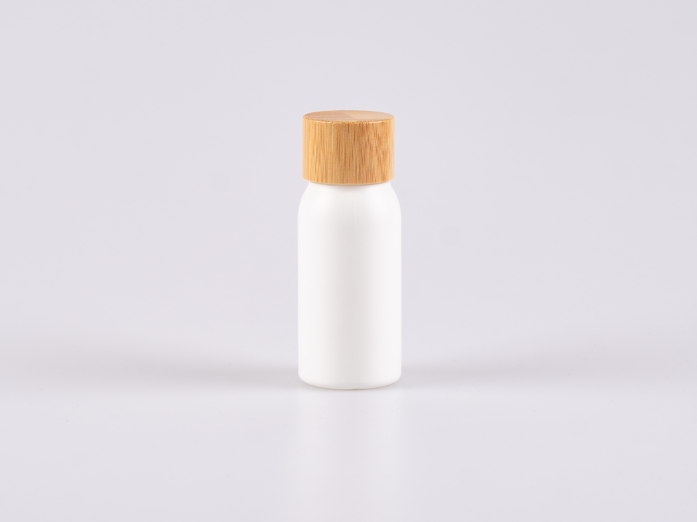HDPE-Flasche "Tara" 50ml, matt-weiss mit Bambusdeckel
