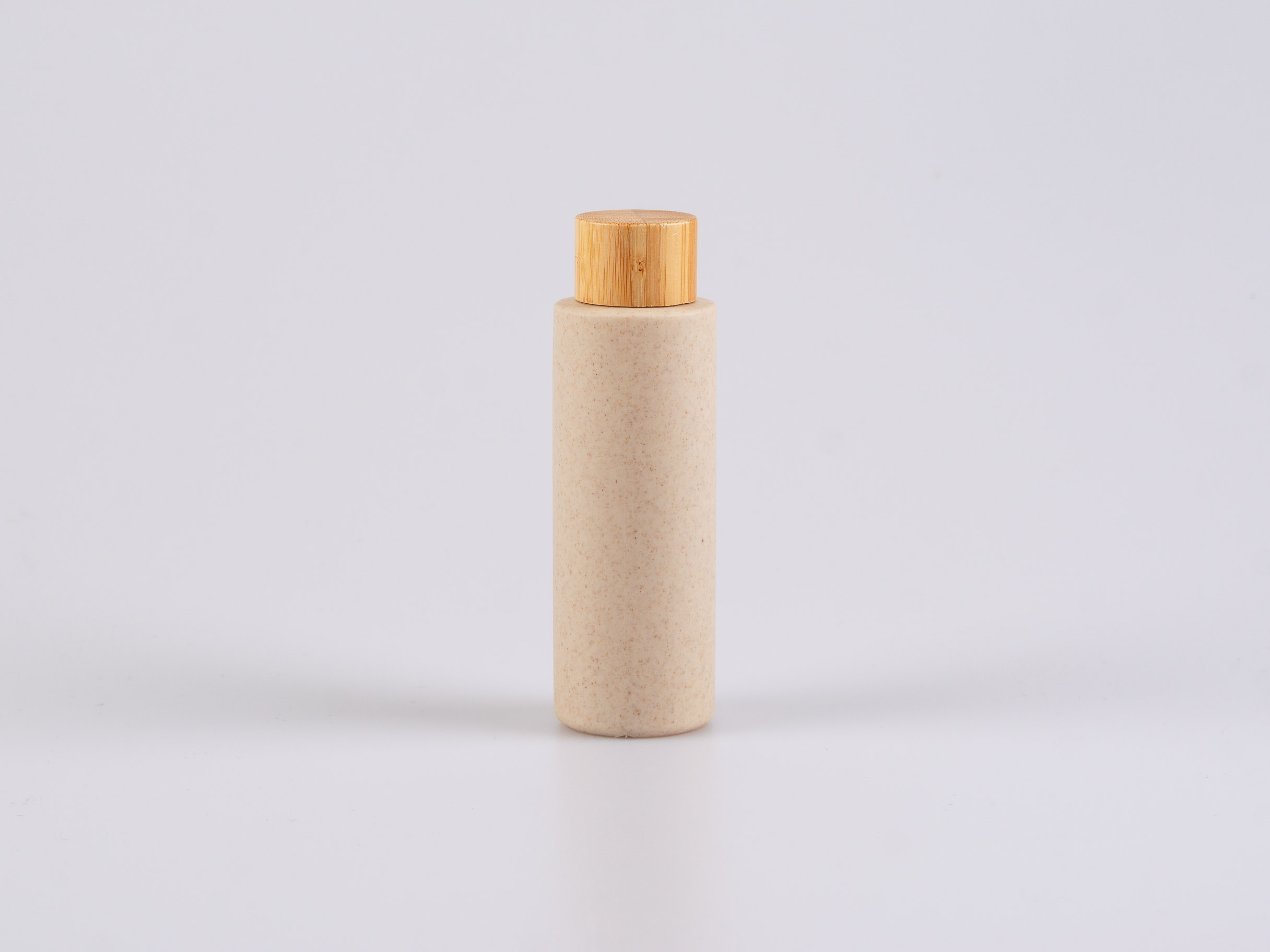Diese Flasche ist ein biologisch abbaubarer Kosmetikbehälter aus Weizenfasern.