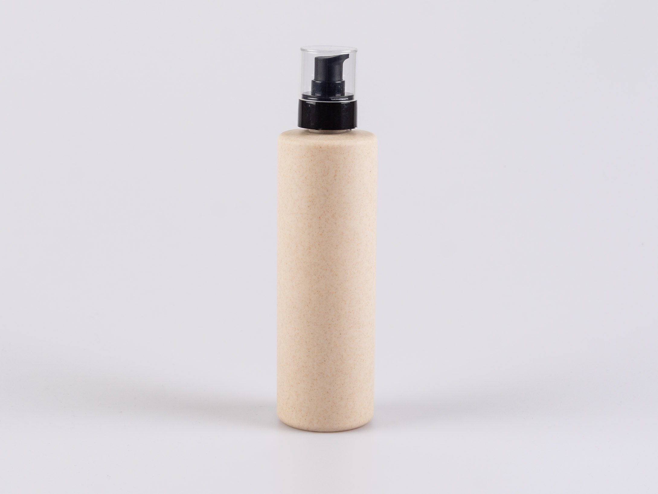 Elegante Biokomposit Flasche mit Lotionspumpe und gut sitzendem, transparentem Deckel.