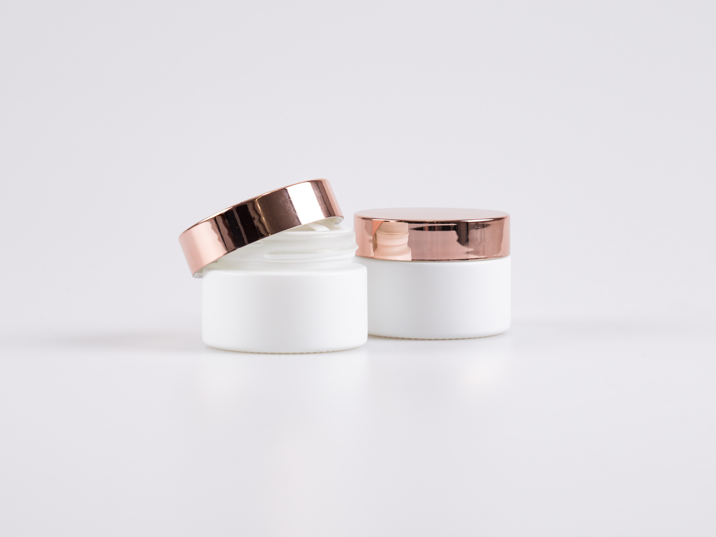 Hochwertige, elegante Dose aus beschichtetem Glas. Der Deckel in glänzendem oder mattem rosé ergänzt die edle Dose perfekt.