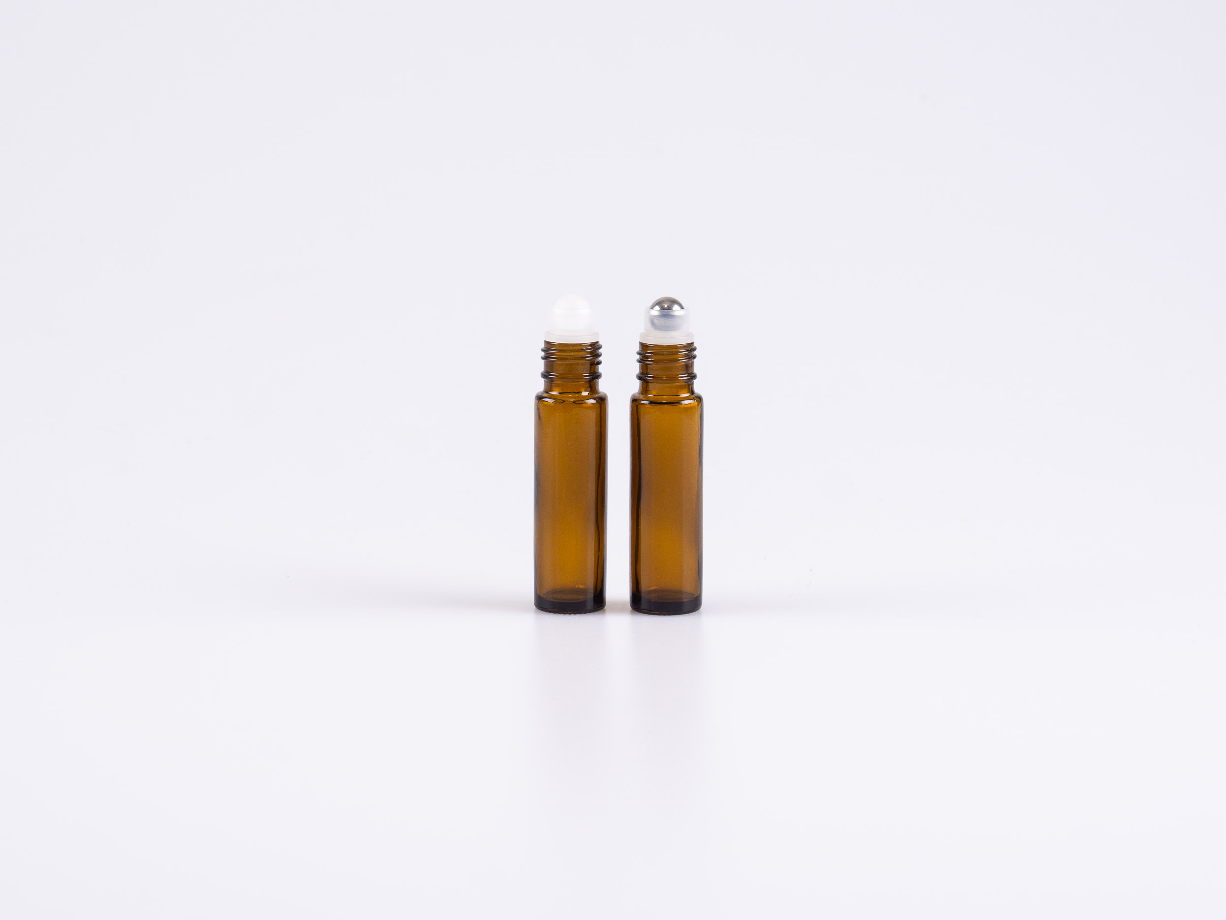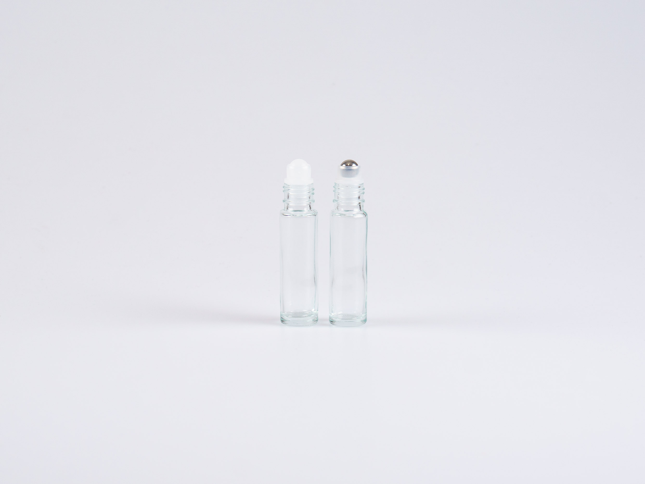 Roll-On-Flasche aus Braun- oder Klarglas Glas.