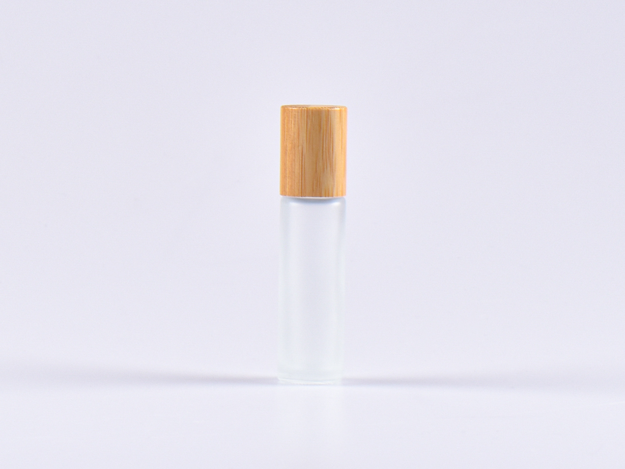 Roll-On-Flasche, Deoflasche, 10ml, säuremattiertes Glas mit Deckel aus Bambus