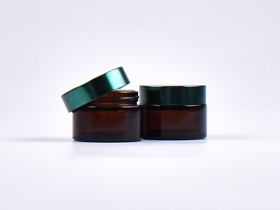 Praktische, hochwertige Braunglasdose mit weissem Schraubverschluss.