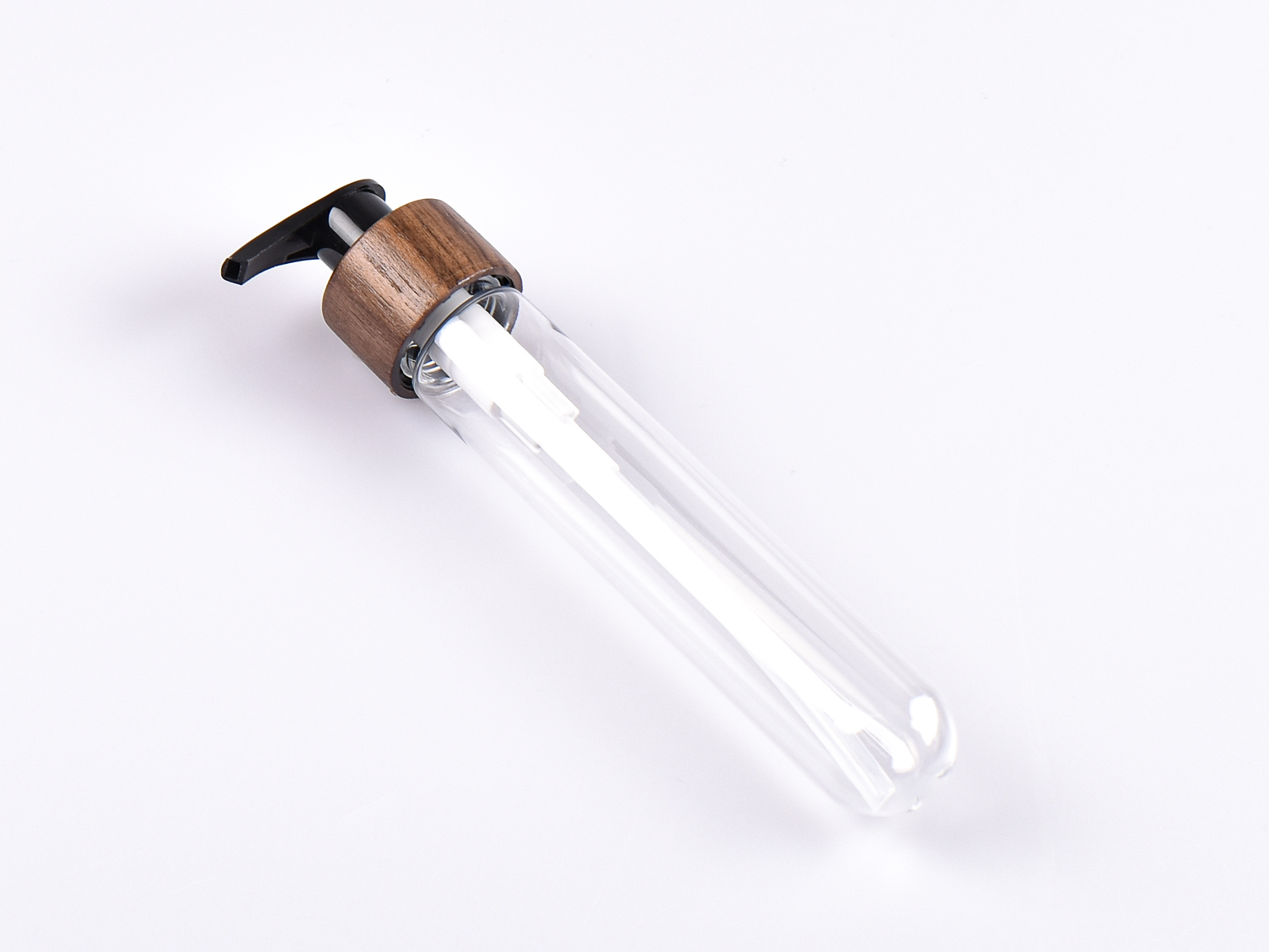Designed by Dynamica! Reagenzröhrchen aus Kunststoff (PET) mit Dispenser, verkleidet mit Nussbaumholz