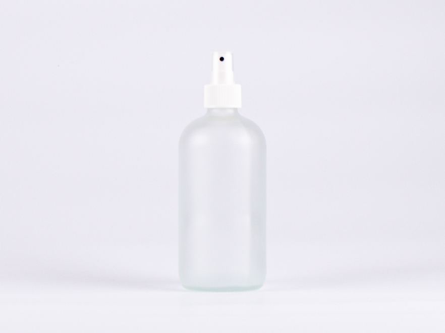 Das elegante säuremattierte Glas dient nicht nur als ästhetisch ansprechende Verpackung, sondern schützt ist auch lichtschützend.