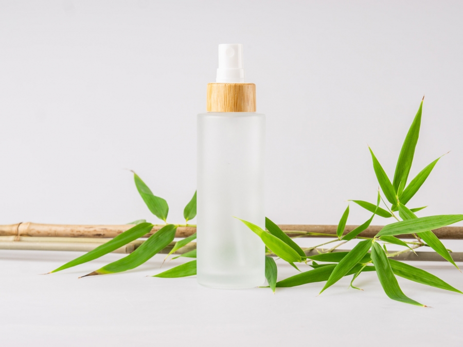 Elegante Sprayflasche aus Glas, veredelt mit echtem Bambus.