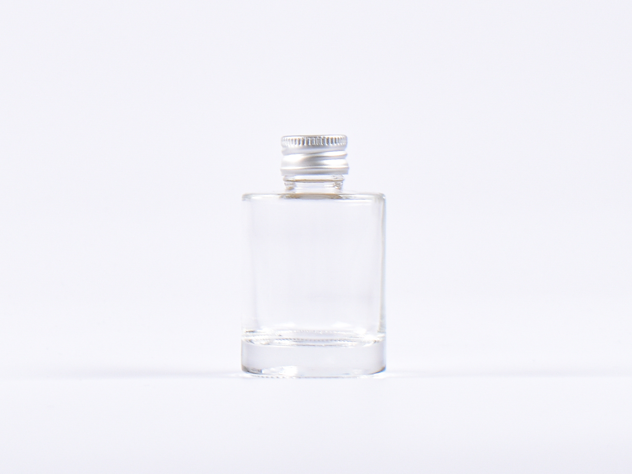 Hochwertige Parfumflasche mit Schraubdeckel aus Aluminium in gold oder silber.